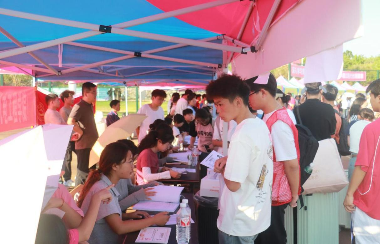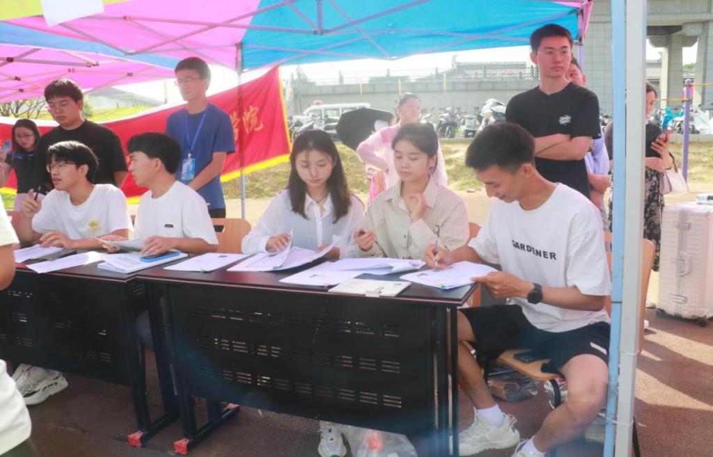 上午7时,新生陆陆续续进入校园。志愿者们接过他们的行李后,按照流程带领新生依次完成注册、报到、缴费等系列流程。面对新生们提出的疑问,志愿者们也耐心地解答。